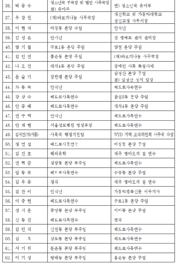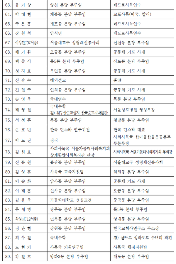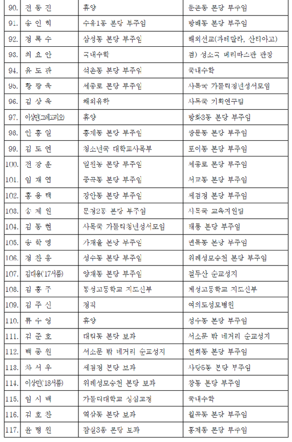 면. 배우석 신부(〃), 송준영 신부(〃), 황광욱 신부(〃)