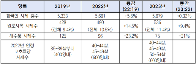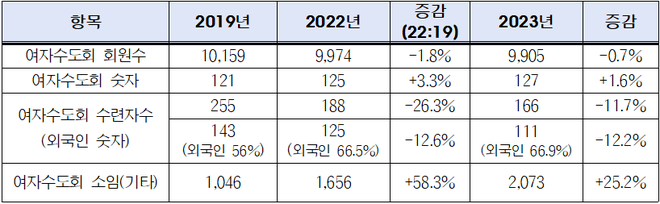 | 항목 | 2019년 | 2022년 | 증감(22:19) | 2023년 | 증감(23:22) |