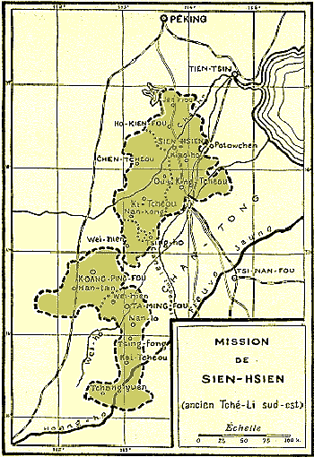 하북성(河北省) 헌현(獻縣)과 천진(天津)이 그가 있던 곳이다. 하북성 동남부다. 프랑스 예수회가 19세기에 맡게 된 선교지였다. 예수회는 명청시대 중국 선교를 주도한 이들이다. 지난 세기에 해체로 흩어졌던 그들이 다시 돌아온 것이다. 편벽한 시골 마을인 헌현이 그들의 거처였다. 직예동남대목구(直隸東南代牧區)의 주교좌 성당이 거기 있었다. 프랑스 예수회가 세우고 가꾼 새로운 집과 대지였다.