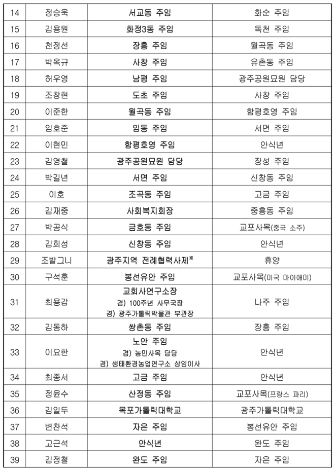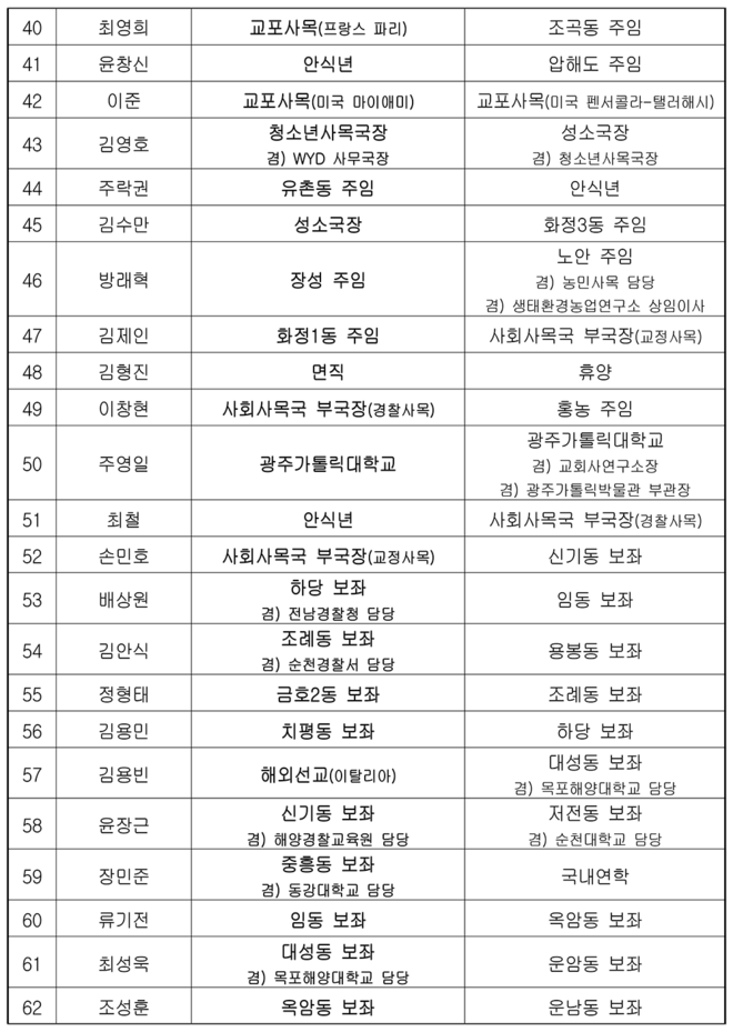 1. 천주교 광주대교구 사제 인사(2025.01.07)