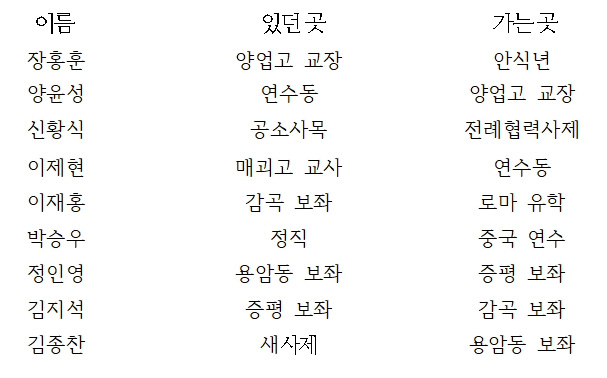 보좌 사제 부임일 : 1월 13-15일(월-수)