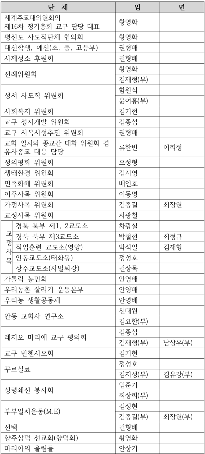 | 김재형 | 영양 주임 | 사목국 홍보·전산 담당 |