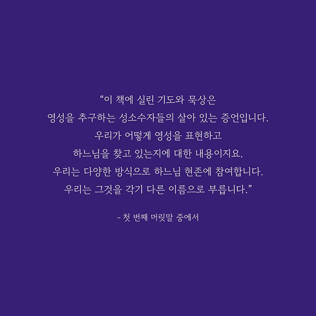 옮긴이들은 퀴어들의 기도, 퀴어와 공명하는 기도문을 읽고 번역하면서 결국 그 모든 것에 참여하고 읽고 나누는 모두를 위한 것이 됐다는 것에 동의했다.