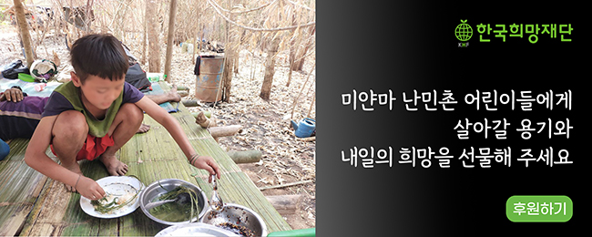 여러분의 후원이 특히 미얀마 어린이들에게 단순한 식량 지원을 넘어 ‘살아갈 용기’와 ‘내일에 대한 희망’을 선물할 것입니다.