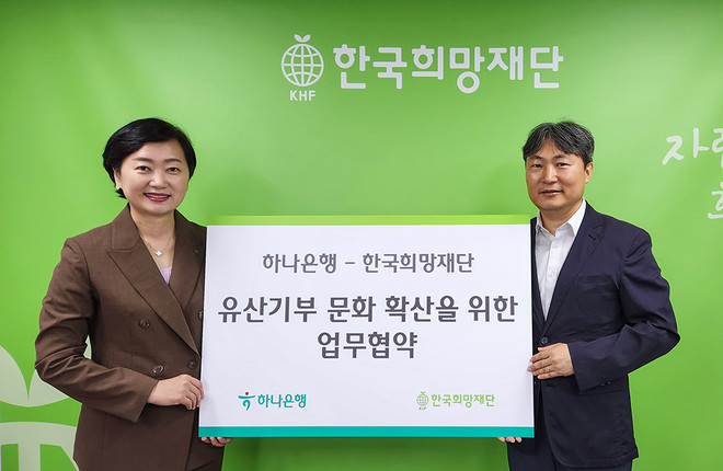 이번 협약으로 한국희망재단은 유산 기부를 원하는 후원자들에게 하나은행 리빙트러스트센터의 법률, 세무 등 금융 자문을 연계할 수 있게 됐다. 두 기관은 각자의 전문성으로 기부 문화 확산과 기부자 발굴을 위한 협력 체계를 만들어 갈 계획이다.