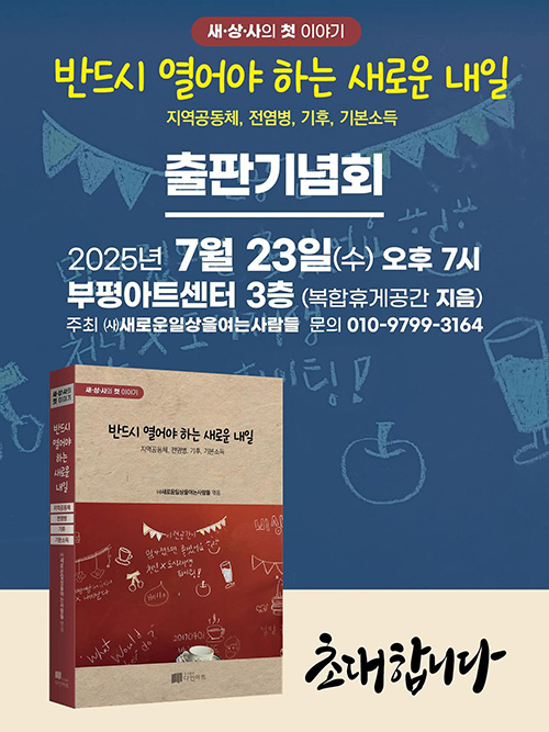 기후 위기와 감염병을 극복할 정책은 무엇이어야 하나? 고민하며 실천하는 사람은 지역에 있다. 지역의 문화와 역사를 지키는 젊은이들이다. 그들의 목소리는 무엇이고 어떻게 지원해야 좋을까? 인천에 터 잡은 사단법인 ‘새로운 일상을 여는 사람들’이 답을 찾으려 발품을 팔았다. 코로나19가 창궐하는 상황에도 지속 가능한 사회를 위해 행동하는 사람, 실천하는 젊은이를 만나 그들의 희망과 고민을 들었다. 기본 소득, 감염병 위기, 지역과 지속 가능성의 가치를 찾아 전문가와 이야기를 나눴다. 이재명 정권이 귀담을 내용이다. 5년여 대화를 기록해 책, "반드시 열어야 하는 새로운 내일"을 펴냈다. 독자의 성원으로 새로운 정책을 새 정권에서 펼치기를 기대하면서.