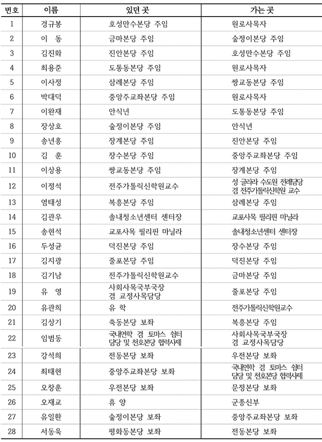 1. 천주교 전주교구 사제 인사(2026.01.07)