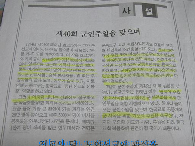 군인주일 맞아 교회신문들의 관심을 대변하듯 풍성한 기사양이다.