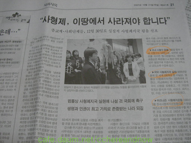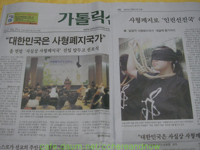 ‘세계 사형폐지의 날’인 10월 10일에 20개 종교시민단체들로 구성된 모임에서 사형폐지국가 선포식이 있었다. 한국천주교회는 주교회의 정의평화위원회를 비롯하여 많은 이들이 이 문제에 대해서 오래전부터 관심을 가져 왔다.