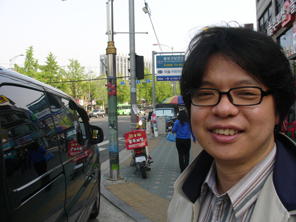그를 만나기로 한 전날 핸드폰이 울렸다. 약속한 시간에 티베트평화연대에서 기자회견이 있으니 그 자리에서 만나자는 것이다. 아마 이번엔 티베트평화연대와 뭔 일을 기획하고 있는 모양이다. 중국대사관 앞에 가니, 이미 각 신문 방송사에서 기자들이 잔뜩 몰려와 취재 준비를 하고 있다. 취재 장소 앞에 여러 대의 방송용 카메라가 기관포처럼 평화연대 사람들을 향해 도열하고 있었다. 그 틈바구니 속에서 다른 사진기자의 사다리를 빌려타고 올라가 나도 사진을 몇 방 찍었다. 피켓을 들고 서 있는 대열 속에 그도 있었다. 아마 평일 낮시간이라 기자회견 때 시간이 나는 평화연대 사람이 별로 없었던 모양이고, 그래서 비교적 시간이 널널한 그도 동원되었다 싶었다. 그 사람을 박성준 선생이 새로 여신 ‘길담서원’에서 만났다.