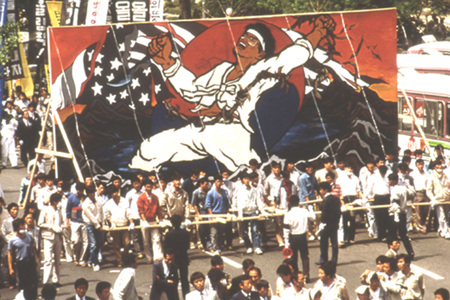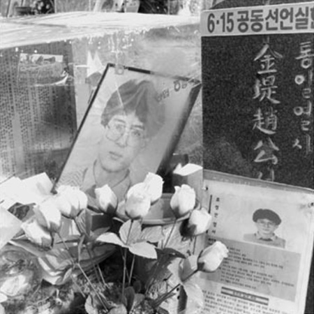 <한겨레신문> 창간호를 받아들던 날, 환한 웃음을 지어 보였던 조성만은 명동성당 가톨릭회관 교육관에서 농민복을 입은 채 배를 가르고 투신했다. 왜? 무엇이 그로 하여금 죽음을 감당케 하였는가? 그의 유서는 이렇게 시작한다. “척박한 땅, 한반도에서 태어난 인간을 사랑하고자 했던 한 인간이 조국통일을 염원하며 이 글을 드립니다.” 그가 사랑했던 조국의 현실은 “일제치하의 조국을 구하고자 자기의 삶을 버리고 싸워갔던 자랑스러운 독립군의 정신은, 인류를 자기 나라의 이익을 뽑아내는 장소로 여긴 미국에 의해서 땅에 묻힐 수밖에 없었으며, 그 대리 통치세력인 해방 후의 정권들에 의해서 이 땅의 주인인 민중들은 어느 한 구석 성한 곳이 없는 사회에서, 민족의 바람인 조국의 독립과 통일을 이야기만 해도 역적으로 몰리는 세상에서 삶을 뿌리 뽑힌 채 갈수록 비인간화되는 모습으로 치닫고” 있었다.