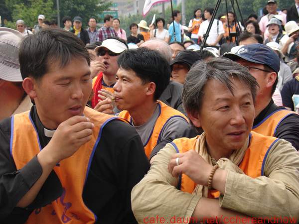 이날 집회에는 정의구현사제단의 문정현, 안승길, 최종수 신부 등이 참석하였으며, 많은 수도자들이 합류하였다. 4대종단 합동기도문 낭독을 맡은 천주교 김규봉 신부는 “소박한 옷차림, 조촐한 밥상, 아담한 집에 진정한 행복과 평화가 깃들어 있음을 알게 하시고 그리 살아가게 하소서.”하는 기도로 마무리하였다. 박남준 시인은 이 자리에서 “시인들로 하여금 서정시를 쓰지 못하게 만드는” 현실을 개탄하면서 대운하 이후에 벌어질 상황을 시를 적어 읽어주었다. 집회를 마친뒤 순례단들은 참석한 다른 시민들과 함께 청계천 광장으로 자리를 옮겨 촛불집회에 참석하였다.