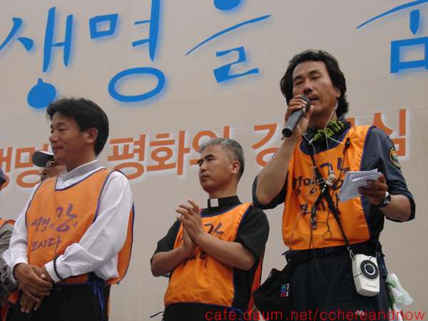 이날 집회에는 김병상 몬시뇰(인천교구)이 참석하여 “현 정부가 경제성장과 국민통합을 내걸고 집권하였지만 국민을 섬기는 모습은 찾아볼 수 없고 대운하 사업 등 밀어붙이기식 태도를 보여 국민을 불안하게 만든다” 지적하며, “위정자가 국민을 가르치려는 오만한 태도로 국민을 이기려고 한다면 국가공동체가 흔들릴 수밖에 없으며, 소수의 건설업자들에게나 이익을 주고 국민을 갈라놓는 대운하 건설은 백지화되어야 한다”고 하였다.