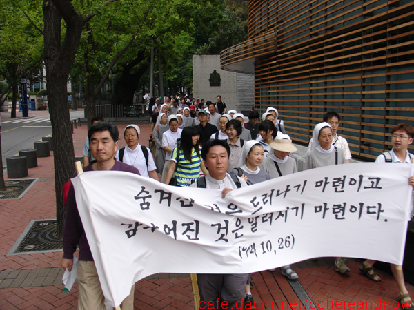 미사를 마친 참석자들은 펼침막을 들고 서울시청 광장까지 행진을 했다.