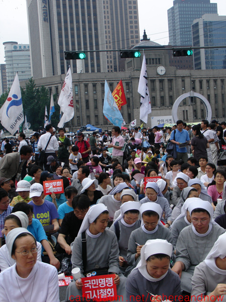 6월28일 오후4시 서울 정동 프란치스코 회관에서 한국 남자 수도회와 사도생활단 장상협의회, 한국 천주교 여자수도회 장상연합회 주관으로 광우병 미국쇠고기반대 시국미사가 진행되었다. 이날 미사에는 평신도와 사제 수도자 100여 명이 참석했다.