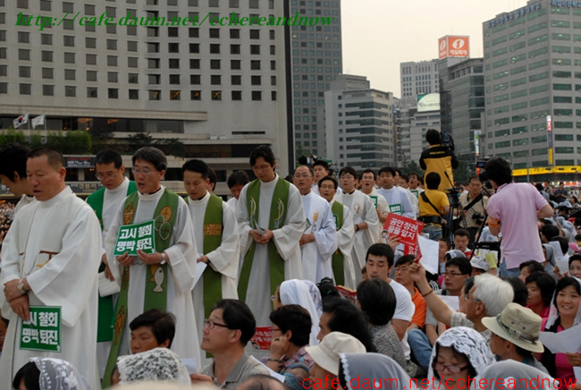 서울시청 앞 서울광장에서 전국 각지에서 올라온 2백 여 명의 천주교정의구현전국사제단 신부들과