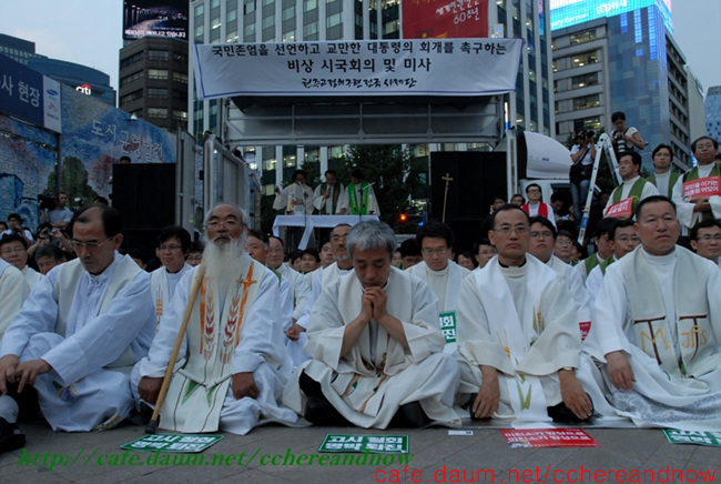 조용히 평화적인 시가 행진이 끝나고 사제단은 단식 기도회에 들어갔다.