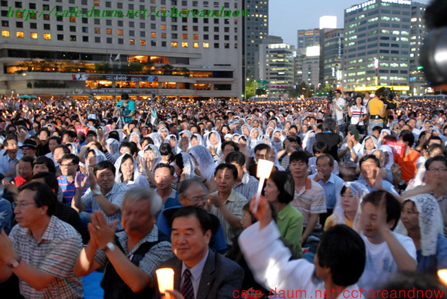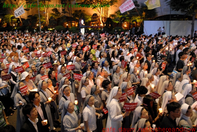 6월 30일, 천주교정의구현전국사제단이 촛불 미사를 올린다는 공지가 알려지면서 그동안 목마르게 기다렸다는 듯이, 신자들은 하나둘 서울시청 앞 광장으로 모여들었다. 준비한 밀떡은 7천5백 개, 3만을 헤아리는 시민들과 신자들은 서울광장을 꽉 메웠다. 누구도 예상하지 못한 상황이었다. "정의가 강물처럼" 흐르기를 바라는 마음은 비단 신자들만의 세상은 아닐 터.