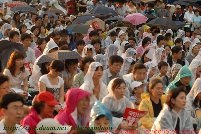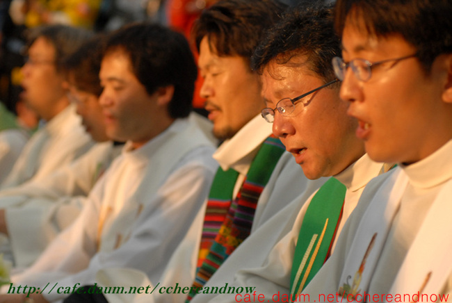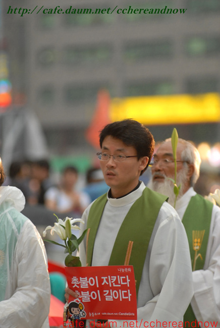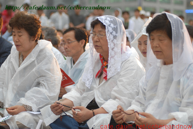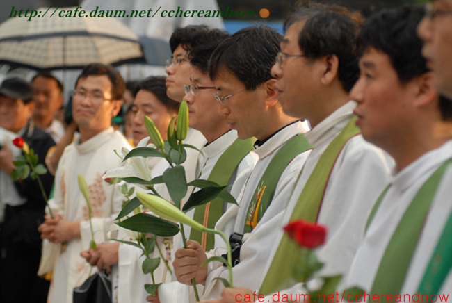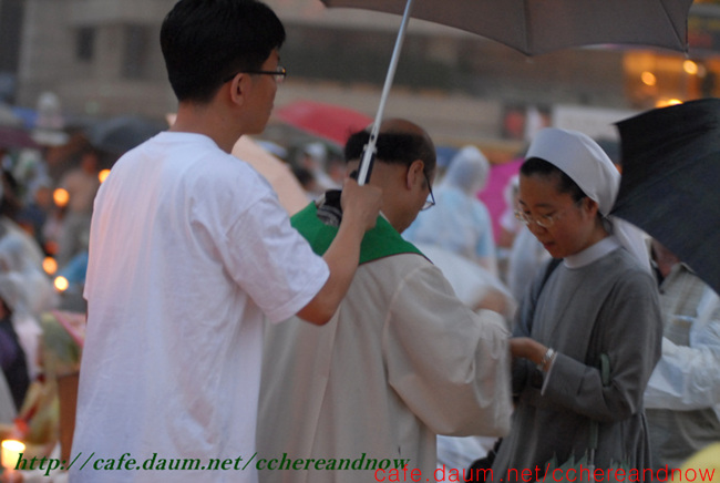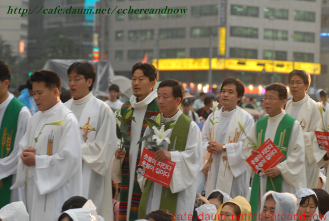 7월 2일 수요일 오후 7시 장맛비 속에서 거행된 사제단의 제3차 시국미사, 50여 명의 사제가 집전하였다.