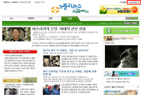 [전체기사]를 클릭해서 보는 것과의 차이는 화면이 세로로 분할이 되어 왼쪽의 제목을 클릭하면 바로바로 오른쪽 화면에 기사가 나온다는 것입니다. [전체기사]같은 경우에는 기사를 모두 본 후 이전 페이지로 돌아가야 하는데 그런 수고를 할 필요가 없습니다.