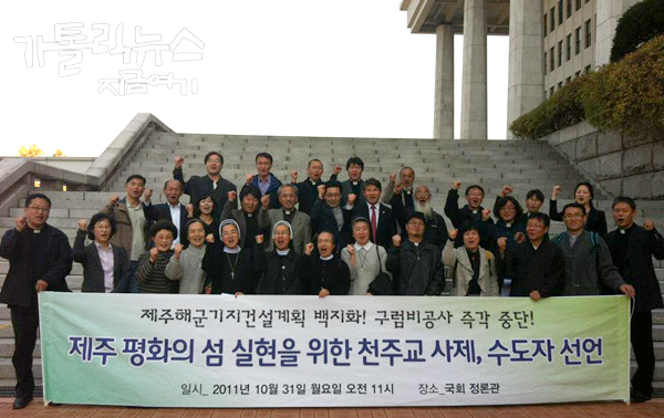 6. 오늘 우리는 생명과 평화를 수호하라는 그리스도 복음의 요구에 따라 ‘제주 평화의 섬 실현을 위한 천주교연대’를 발족하였고 3711명의 사제․수도자들의 이름으로 다음과 같이 선언하고 요구한다.