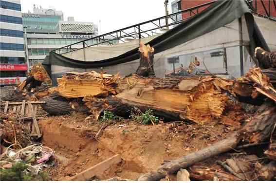 명동성당 재개발 반대 대책위원회(이하 대책위)는 "폐기물 반출을 위해서는 오히려 아스콘이 깔린 바닥이어야 용이하며, 발굴지 중앙에 있는 수목을 베어낸 것은 주변부 팬스 설치와 아무런 상관이 없음에도, 대우건설은 거짓말을 하고 있다"고 주장했다.