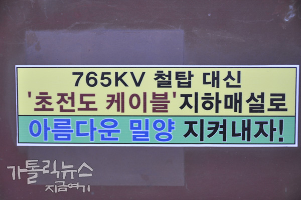 이 문제에 함께 하고 있는 김준한 신부(부산교구 정의평화위원회 위원장)는 “송전탑 문제는 한전만의 절대적 이득을 위한 사업이라는 것에 있다. 수도권을 위한 전력 송전을 하는데, 송전선로가 관통하는 지역에 대한 배려가 전혀 없다. 서로 똑같이 이득을 보지 않더라도 최소한의 공유가 있어야 한다. 전적으로 부당하다”라고 꼬집으면서, “한전은 싼 전기를 끊임없이 공급하고자 하면서 그 때문에 누군가가 손해본다는 것을 모른다. 그것은 재산권, 건강권을 침해당하는 이들의 고통으로 매개된 전기라는 것을 알아야 한다”고 비판했다.