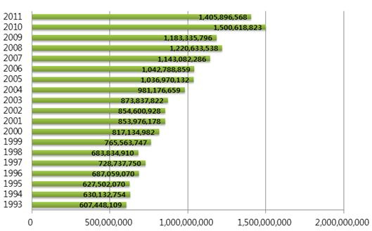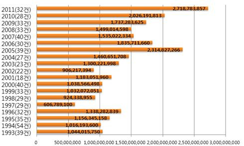 2011년 지원 현황을 보면, 2010년(18억 4885만 2357원)보다 총액 약 8억 7천만원, 백분율로 환산하면 47% 증가했으며, 이에 대해 한국카리타스 측은 “지난해에는 일본 대지진, 동아프리카 식량위기, 아시아지역 홍수의 영향으로 특별헌금과 후원금이 늘었다. 과거 내역을 살펴봐도 대형 재난이 발생한 해에는 원조금이 눈에 띄게 증가한 것을 알 수 있다”고 설명했다.