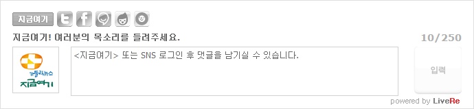 <가톨릭뉴스 지금여기>에서 '소셜댓글'을 지원한다. 소셜댓글이란 트위터, 페이스북 등의 소셜네트워크서비스와 웹페이지가 연동되어 달리는 댓글을 일컫는다.