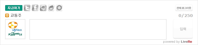 ▲ 로그인 페이지에서 로그인하면 다시 원래의 기사로 돌아온다. 로그인이 완료되면 위 그림과 같이 ‘지금여기’ 단추의 색이 녹색으로 바뀌어 있다. 입력창에 댓글을 쓰고 <입력> 단추를 클릭하면 댓글을 달 수 있다.