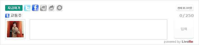 ▲ 승인이 완료되면 페이스북 단추의 색도 바뀌어 있다. 이처럼 ‘지금여기’, ‘트위터’, ‘페이스북’에 로그인을 하게 되면, <지금여기>에서 뿐만 아니라 트위터와 페이스북에도 기사의 댓글이 동시에 게재된다.