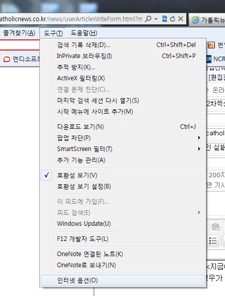 이 경우에는 아래와 같이 인터넷옵션을 변경해주면 로그인할 수 있다.