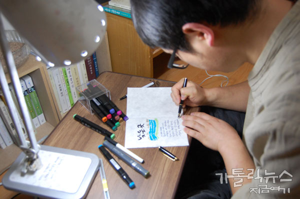 그림과 메세지를 적습니다. 그리고 오른쪽에 카드를 끼우면 될 것 같네요.