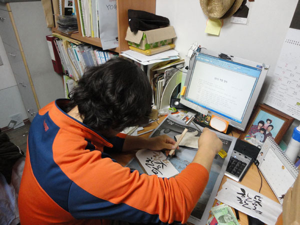 한 글자 한 글자 조심해서 파 나갑니다. 시간이 걸려서 조금 지루할 수도 있지만 완성된 모습과 받으시는 분이 좋아할 것을 생각하면 어느새 즐거운 작업이 됩니다.