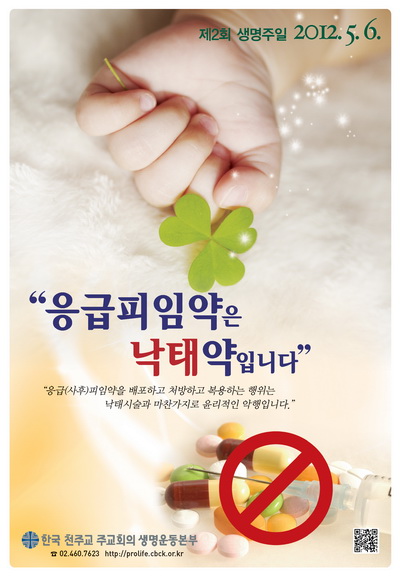 한국천주교 주교회의 한국천주교주교회의 생명윤리위원회(위원장 장봉훈 주교)는 제2회 생명주일(5월 6일)을 맞아 “응급(사후)피임약은 낙태약입니다”라는 주제로 담화를 발표하였다.