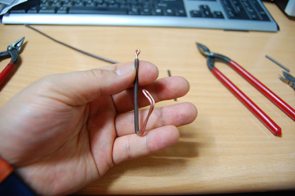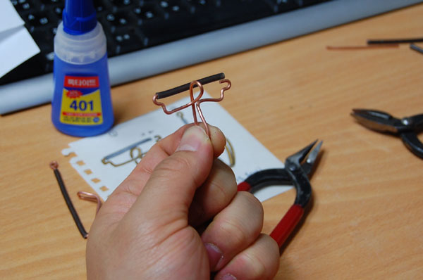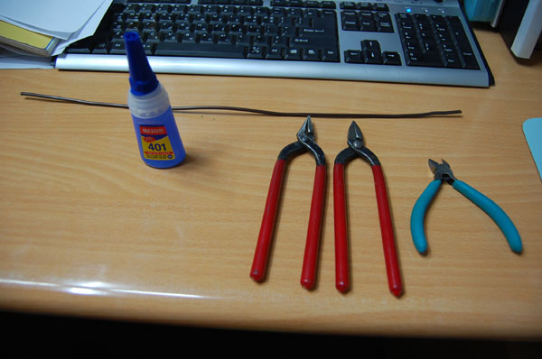 준비물은 간소합니다. 넉넉한 길이의 전선 한 가닥, 전선을 자르거나 구부릴때 쓰는 공구, 그리고 순간접착제입니다.