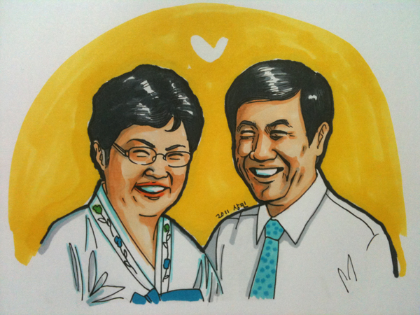 늘 남의 얼굴만 그려 준다고 지금껏 부모님을 그려드린 적이 한 번도 없었네요. 언제나 건강하고 행복하길 바라는 아들의 마음을 담아 활짝 웃는 부모님 그림을 덤으로 선물해드렸습니다. 제 걱정에 늘 노심초사하시는 부모님이지만, 이날 만큼은 걱정은 고이 접어두고 기쁘고 행복하셨길 바랍니다.