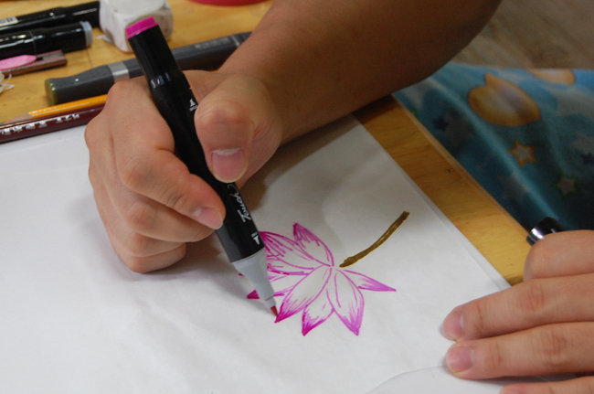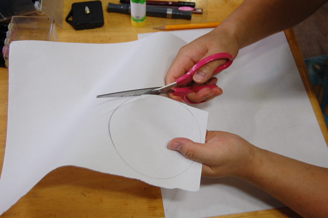한지에 시디를 대고 오린 다음, 앞 장의 인쇄 글씨 등이 보이지 않도록 한두 장 겹쳐서 붙일 겁니다. 한지를 먼저 오린 후 그림을 그려서 붙여도 되고, 반대로 그림을 먼저 그린 다음 오려서 붙여도 상관없겠죠.