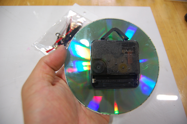 편의를 위해 고리가 붙어 있는 시계 부속을 샀고요. (300원 정도 비싸더군요.) 순간접착제를 이용해 시디 뒷면에 붙여줍니다.