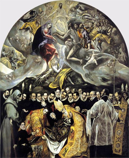 초상화도 아니고 신약성경을 소재로 한 그림도 아니지만 엘 그레코가 남긴 가장 크고 가장 찬연한 작품은 예나 이제나 톨레도 산토 토메 성당 입구 오른쪽 벽을 몽땅 차지하고 있는 대작 ‘오르가스 백작의 매장’이다. 이 그림은 산토 토메 성당 신부가 1323년에 작고한 오르가스 백작의 유덕을 기리려고 엘 그레코에게 주문해서 1586년에 제작한 것이다.
