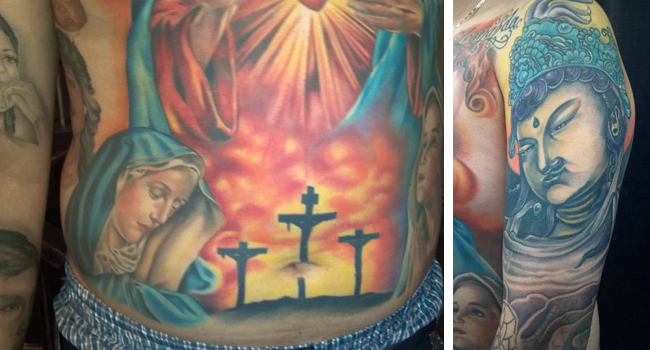 샌프란시스코에서 바디 아트(body art)박람회가 열려서 친구들과 그곳을 찾았다. 거기에서 나는 문신 문양의 한 분야로 ‘종교’가 있는 것을 발견했다. 슬픔의 성모님, 고통의 성모님, 과달루페 성모님, 십자가, 묵주, 예수 성심 등이 가장 인기 있는 종목이라고 거기서 만난 아티스트가 이야기해 주었다.