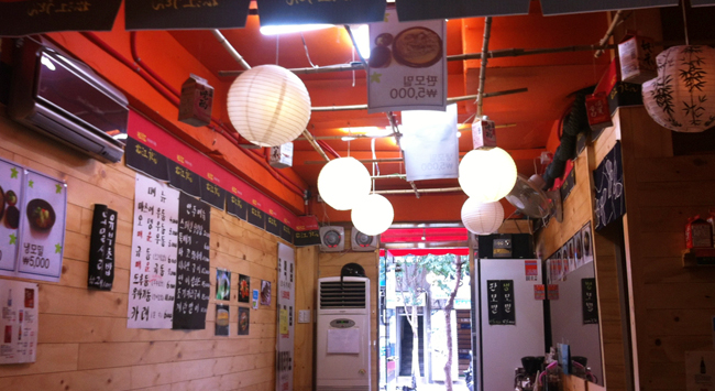 가을개편이 마무리된 사진입니다. 산만한 밥집에서 분위기 있는 술집으로 바꿔보려고 컨셉을 잡았던 건데 그렇게 보이시나요? 이 외에도 선반도 만들어달고 외부에 배너도 새로 만들어 다는 등 다른 여러 가지도 진행했지만 지면의 한계 상 생략했습니다. 예산 15만원에 천장, 벽, 외부 홍보물까지 총 비용 10만원으로 개편작업을 마쳤으니 30%이상 절감한 셈이네요. 손발이 고생했지만 그만큼 보람도 느껴집니다. 이제 손님만 많이 오시면 참 좋겠는데요. 하하!