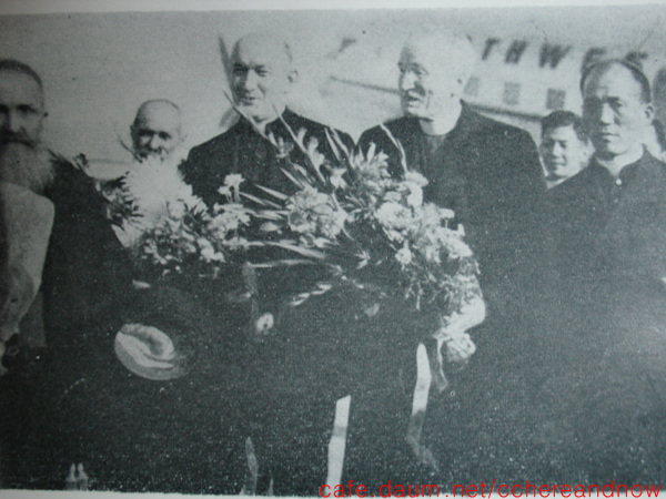 방주교는 환영식에서 “조선신도 여러분은 반드시 여러분의 신국가(新國家)를 건설하시는 현단계에 있어서 그리스도적 인생관과 도덕관을 가장 충실히 파악하시고 이 그리스도 신앙으로부터 이 도덕적 진리를 신조선국가 건설에 실지로 구현시킬 모든 역량과 용기를 얻으실 줄 확신하는 바입니다”라고 답사를 하였는데, 이는 교황청의 뜻에 따라서 반공친미정권의 수립을 위해 노력하자는 이야기에 다름 아니다.