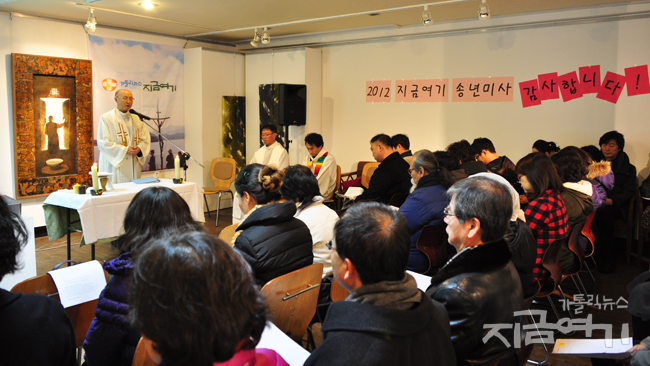 지난 12월 8일 정동 품사랑 갤러리에서 2012년 가톨릭뉴스 지금여기 송년미사와 소박한 잔치를 열었습니다. 70여 명의 지금여기 관계자들과 독자 여러분이 참석하셔서 기분 좋은 한 때를 보냈습니다.