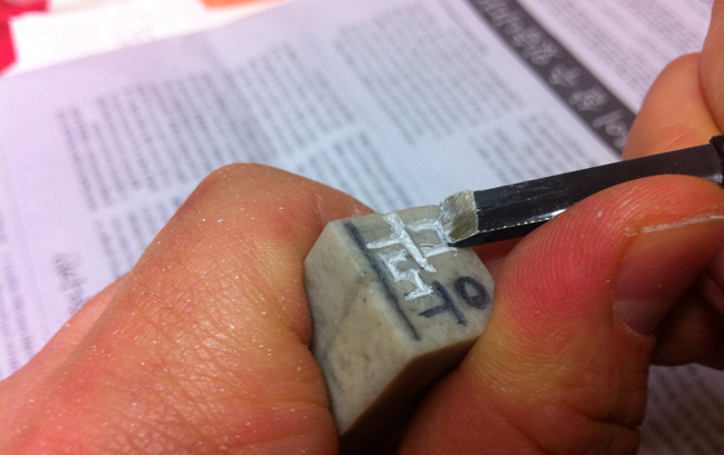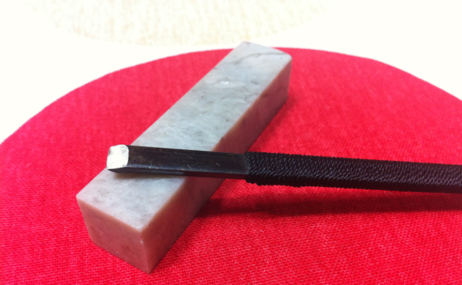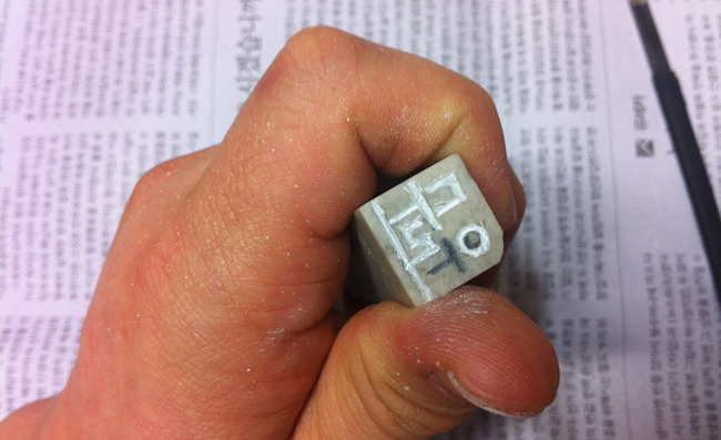 그냥 네모난 테두리는 밋밋하니 옆을 좀 깎아 둥글게도 만들며 개성을 좀 주어야겠지요. 사실 그래야 위조도 어렵고 폼이 난다며 전각도구를 살 때 필방 아저씨가 귀띔해주었습니다.