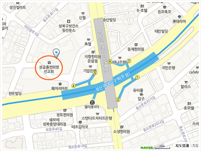 보문동 방면으로 직진 → “성북구청 앞 교차로”(사거리)에서 좌회전 후 직진 → “성북구청입구 교차로”(사거리)에서 아파트단지 방면으로 30m 직진 후 오른쪽 첫 번째 골목으로 우회전 후 직진 → 돈암제일교회를 지나 직진 → 한옥대문 집
