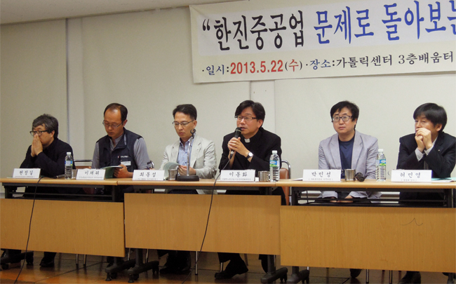 이 신부는 “최근 한국의 노동현실과 노사관계는 가톨릭교회에 큰 도전으로 다가오고 있다”면서 “비정규직 문제와 더불어 정리해고라는 고용 불안정이 한국 노동현실의 가장 큰 문제”라고 지적했다. 그는 이번 토론회의 취지는 가톨릭 노동관에 부합하지 못하는 오늘의 노동현실을 고발하고, 한진중공업 문제를 통해 드러난 노동자들이 처한 여러 문제를 극복할 해결책을 고민하기 위함이라고 밝혔다. 또한 이 신부는 “희망버스가 보여주었듯, 이런 고민과 대안이 결국 시민사회와의 연대 안에서 이뤄질 수밖에 없다”고 강조했다.